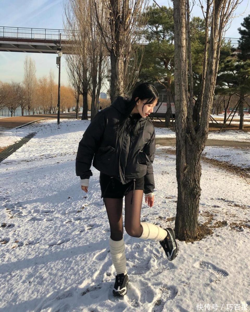 喜欢穿加绒黑丝或者瑜伽裤的姐妹,都可以照搬照抄,无论连脚还是脚蹬,都能用它掩盖单品的尴尬衔接部位,高级感直接拉满,贼有性价比和辨识度,这里需要提醒大家一下的是,堆堆袜筒和长裤配色一定要鲜明,切记不能选择同色系和相近色系,博主身上这类非黑即白的组合模式就很nice。
